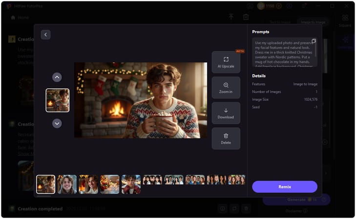 HitPaw FotorPea is one of the easiest AI photo generators available today. It supports both text-to-image and image-to-image creation, making it perfect for Christmas photo projects. With a beginner-friendly interface and fast processing speed, users can generate professional-quality holiday images in just a few clicks.